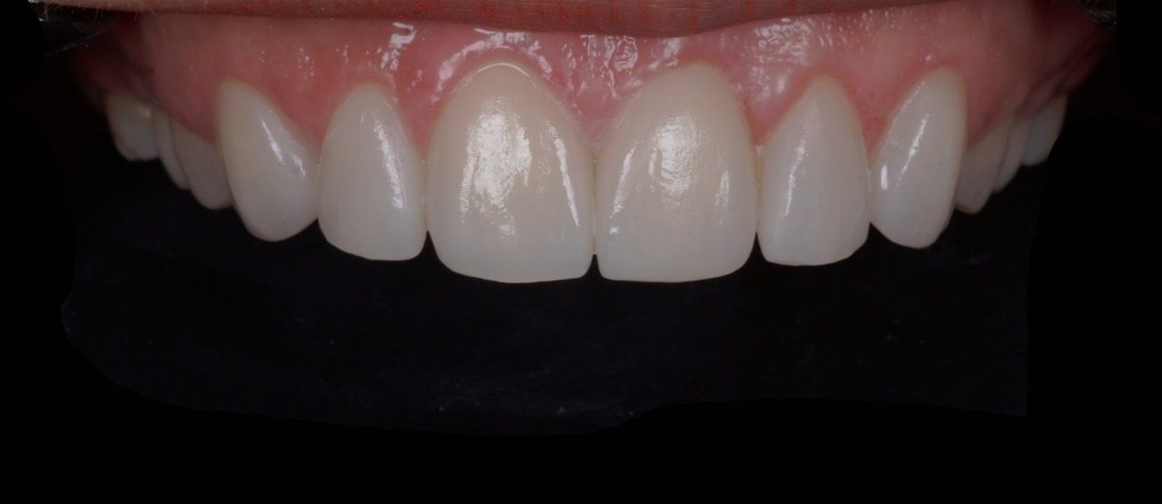 2. ความสวยงามของเหงือก (Pink Esthetics)  เหงือกที่โอบรอบครอบฟันต้องมีรูปร่างและสีสันสวยงาม  มีระดับขอบเหงือกกลมกลืนกับฟันข้างเคียง ไม่มีช่องว่างสามเหลี่ยมสีดำ (Black Triangle)