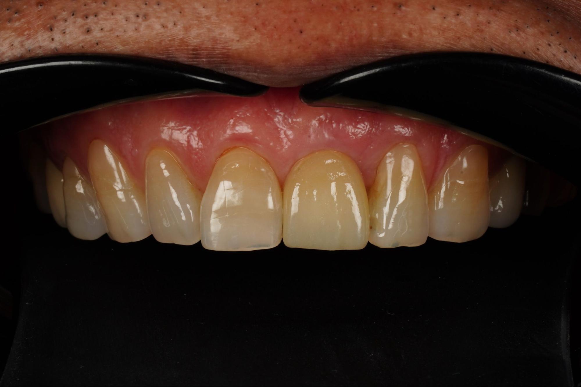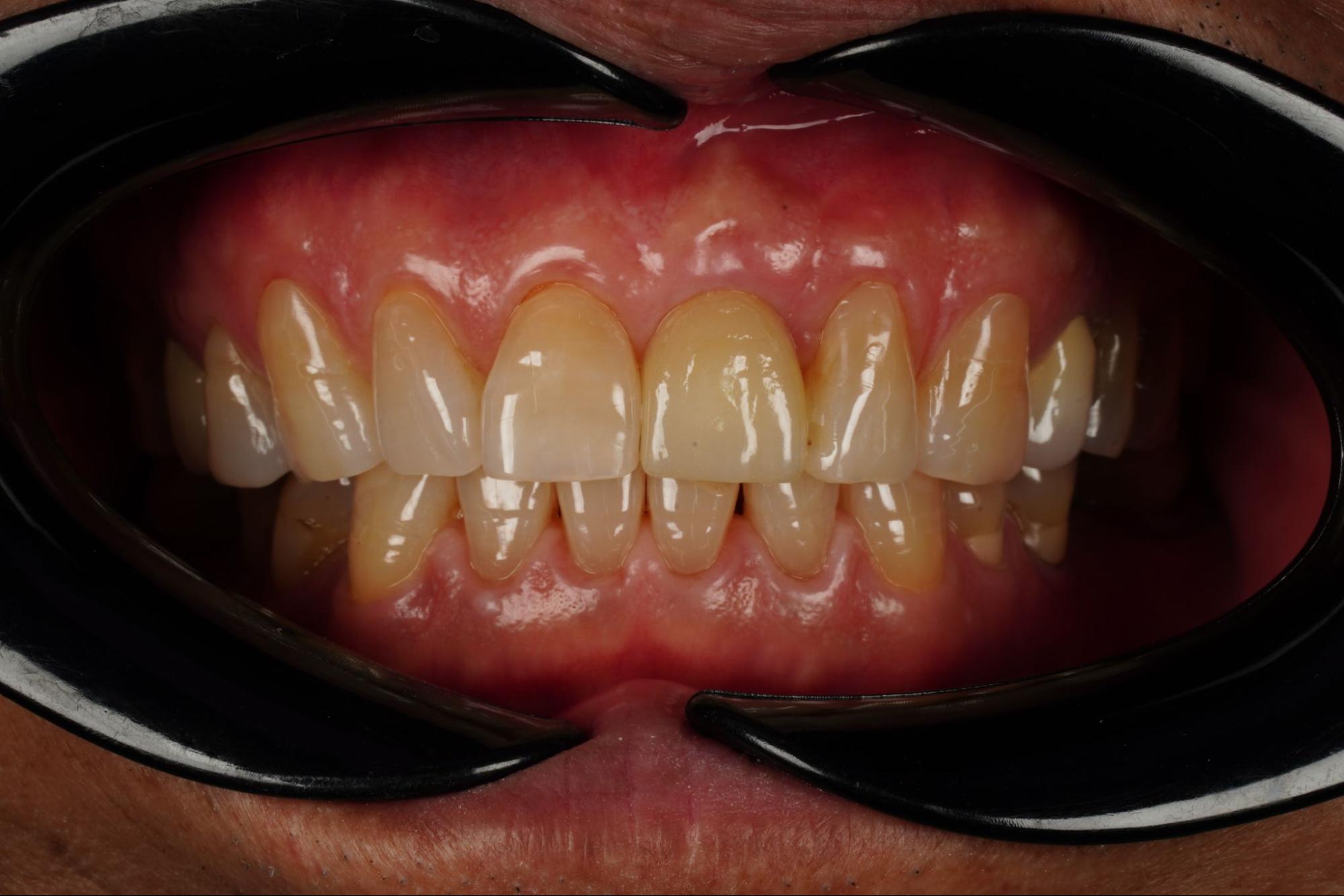 ภาพแสดงรูปร่างของเหงือกหลังปรับแต่งด้วยครอบฟันชั่วคราว